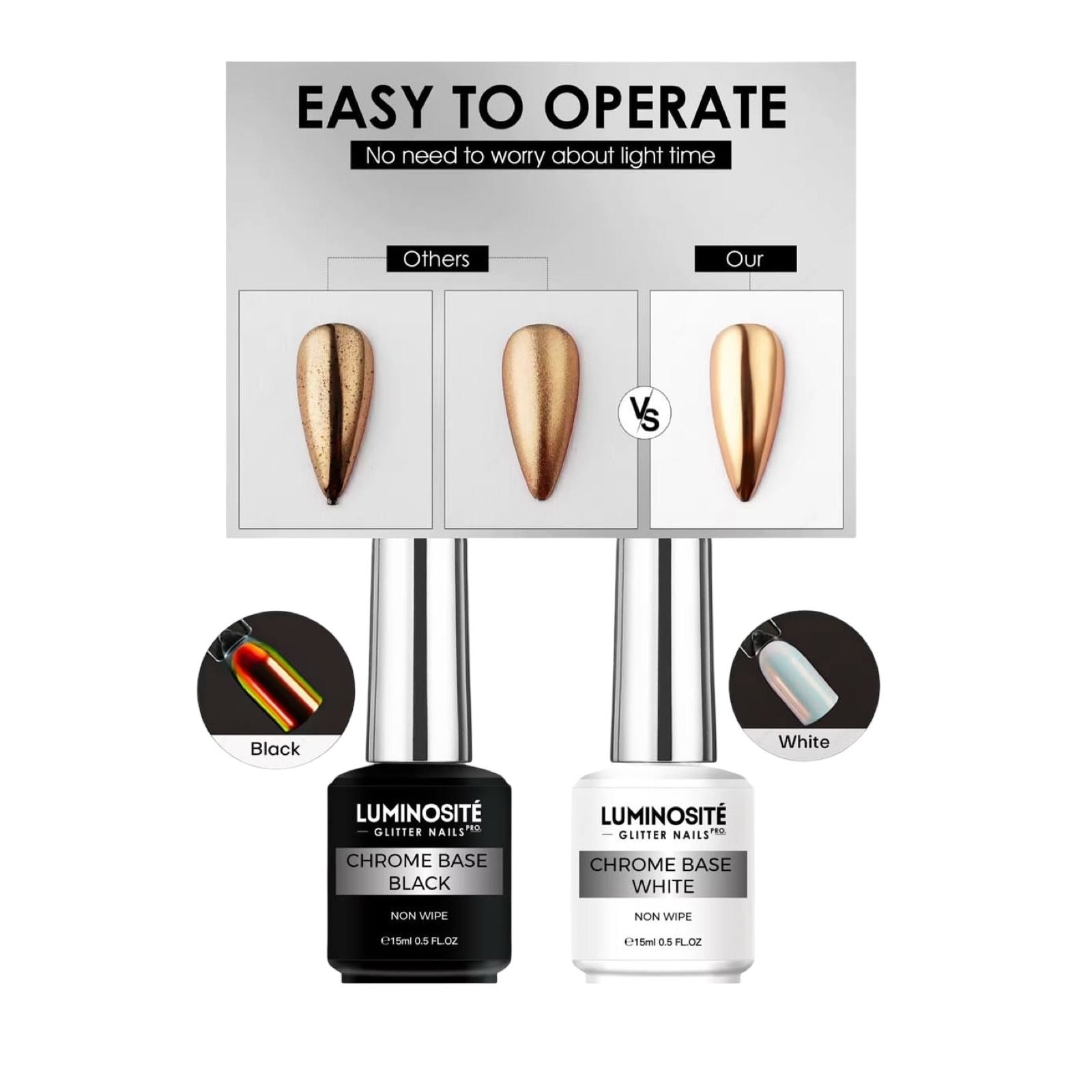 Base con color blanca o negra, perfecta para que el chrome se adhiera y quede espejo.